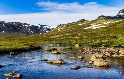Jotunheimen wordt ook wel het Huis der Reuzen genoemd. Hier liggen de hoogste bergen van Noorwegen: de Galdhøpiggen (2469 m) en de Glittertind (2470 m). Het Jotunheimen Nasjonalpark behoort tot de grootste beschermde natuurgebieden van Noorwegen. Verschillende ijstijden zijn verantwoordelijk voor het huidige profiel van dit gebergte, en ook vandaag de dag is een groot deel van het gebied nog door gletsjers bedekt. Het is heel goed mogelijk dat we vandaag een kudde rendieren tegenkomen.